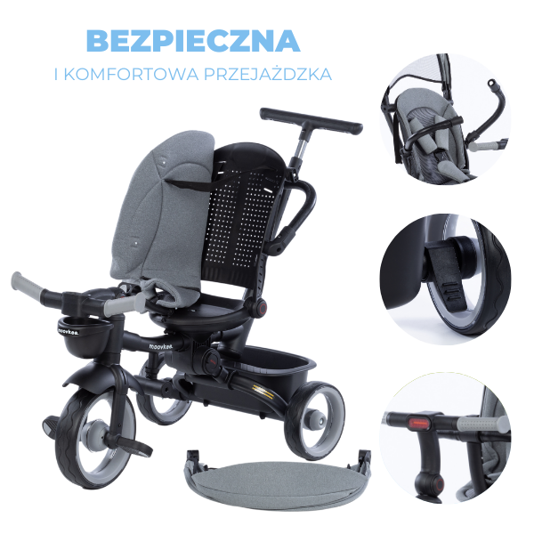 - Wielofunkcyjny rowerek trójkołowy dla dzieci od 10 miesięcy do 5 lat – LIAM to połączenie komfortu, bezpieczeństwa i kompaktowej formy. Obrotowe siedzisko, trwałe koła PU i intuicyjna regulacja sprawiają, że każdy spacer to przyjemność!